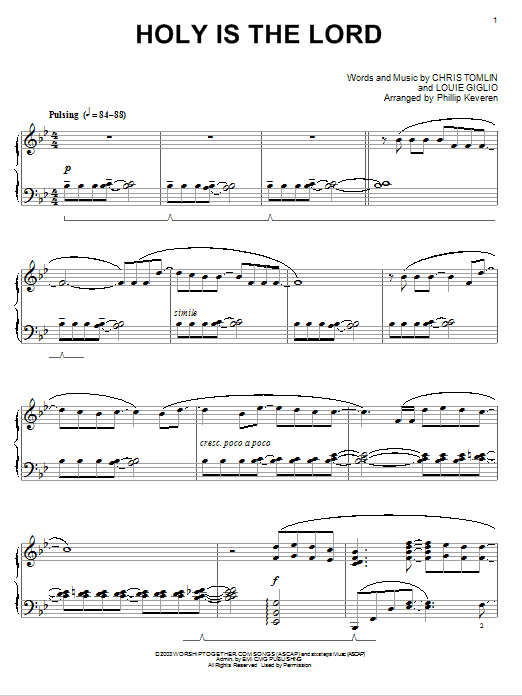 Download or print Chris Tomlin Holy Is The Lord [Jazz version] (arr. Phillip Keveren) sheet music, chords and digital score arranged for Piano Solo. This Praise & Worship score includes 3 page(s).