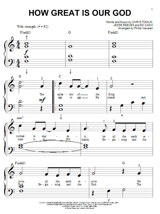 Download or print Chris Tomlin How Great Is Our God (arr. Phillip Keveren) sheet music, chords and digital score arranged for Piano Solo. This Sacred score includes 3 page(s).
