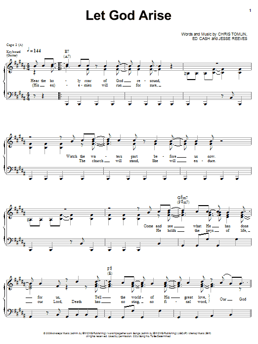 Download or print Chris Tomlin Let God Arise sheet music, chords and digital score arranged for Piano, Vocal & Guitar Chords (Right-Hand Melody). This Pop score includes 6 page(s).