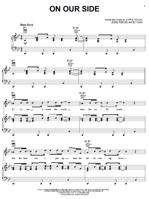 Download or print Chris Tomlin On Our Side sheet music, chords and digital score arranged for Easy Piano. This Christian score includes 4 page(s).