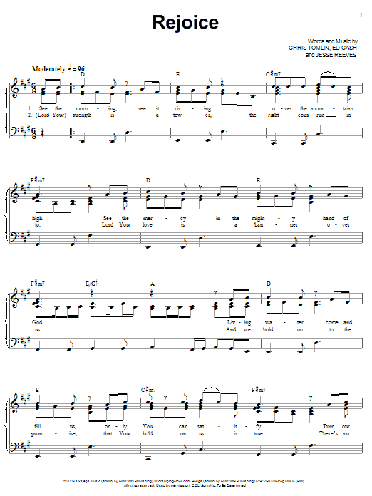 Download or print Chris Tomlin Rejoice sheet music, chords and digital score arranged for Easy Guitar Tab. This Christian score includes 4 page(s).