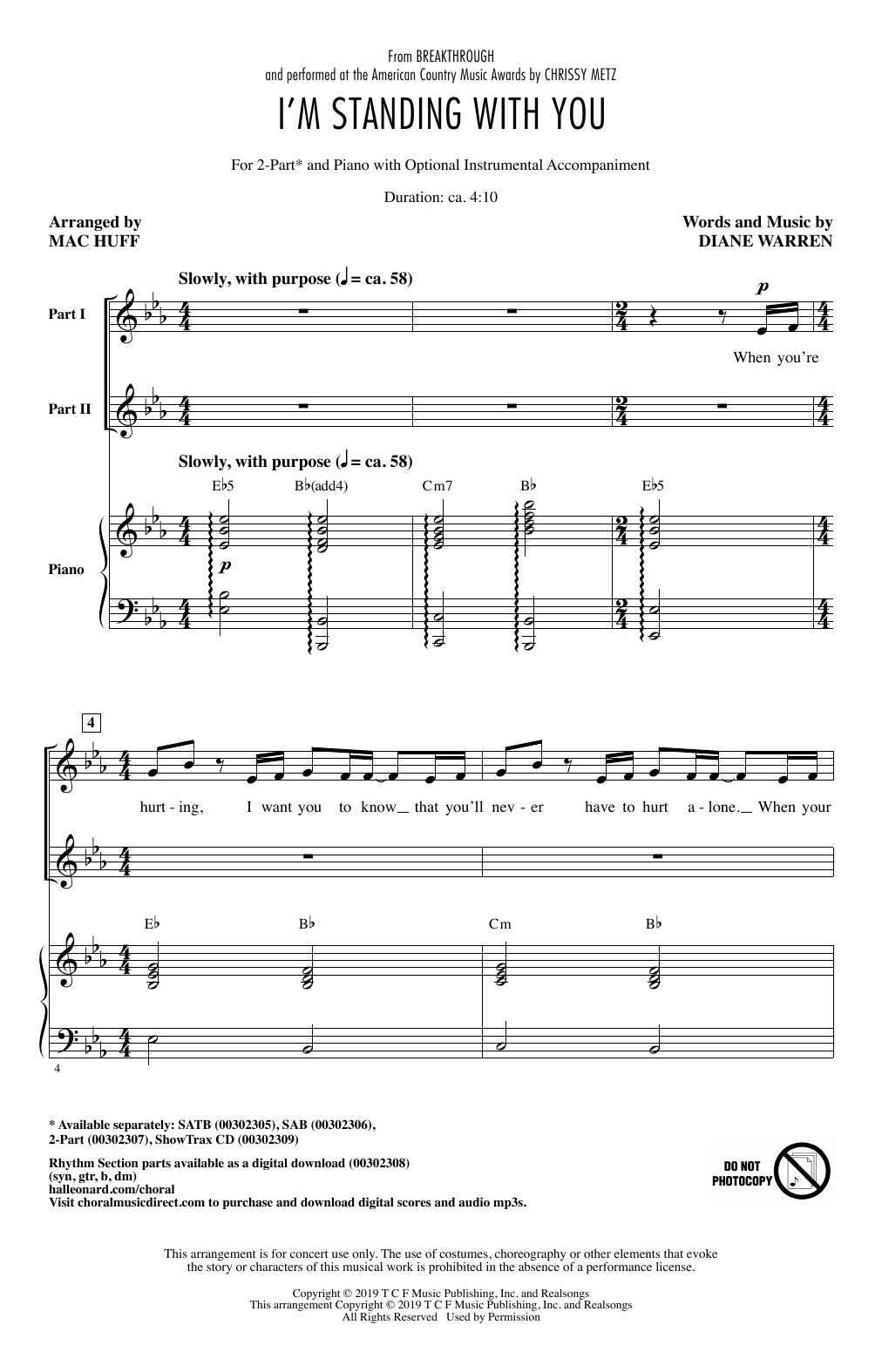 Quick facts I'm Standing With You (from Breakthrough) (arr. Mac Huff) about digital sheet music