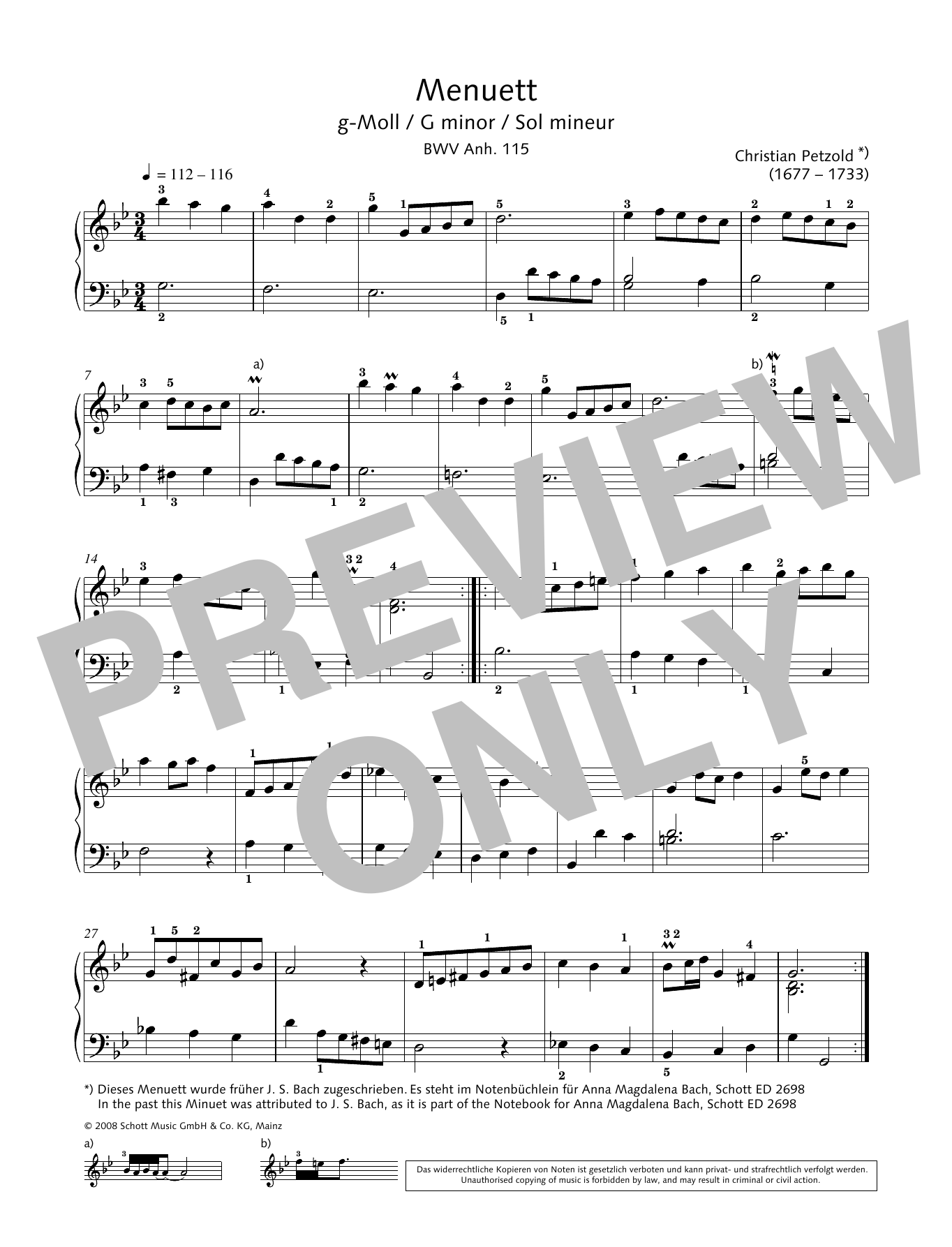 Quick facts Minuet In G Minor, BWV Anh. 115 about digital sheet music