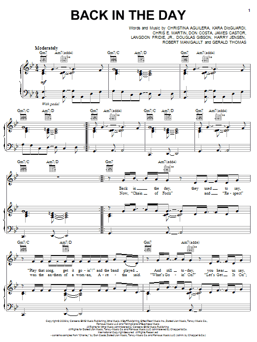 Download or print Christina Aguilera Back In The Day sheet music, chords and digital score arranged for Piano, Vocal & Guitar Chords (Right-Hand Melody). This Pop score includes 6 page(s).