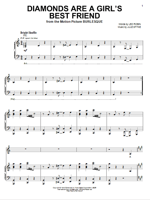 Quick facts Diamonds Are A Girl's Best Friend about digital sheet music