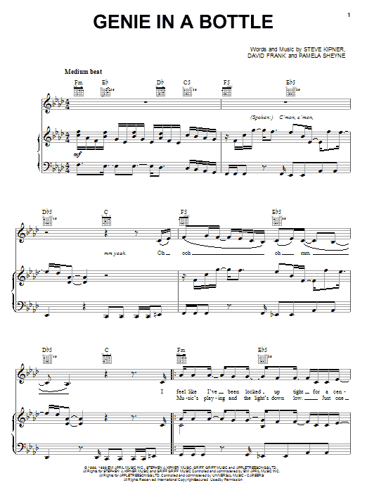 Download or print Christina Aguilera Genie In A Bottle sheet music, chords and digital score arranged for Violin Solo. This Pop score includes 2 page(s).