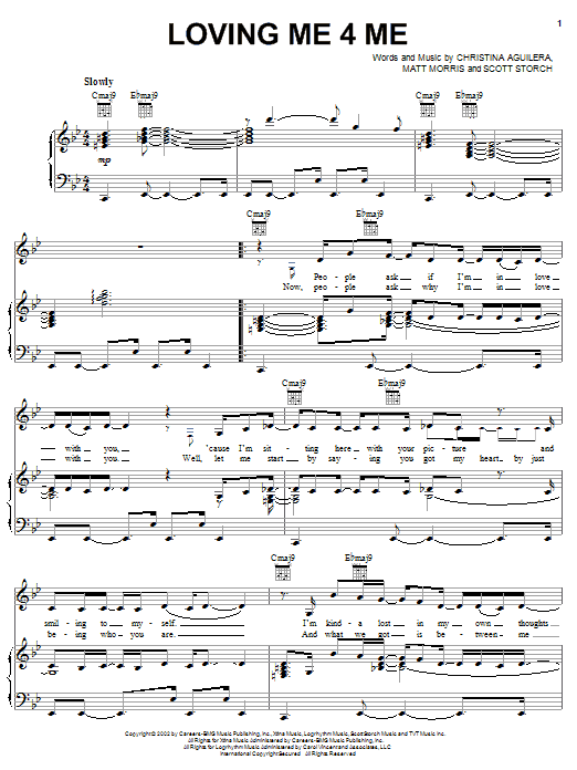 Download or print Christina Aguilera Loving Me 4 Me sheet music, chords and digital score arranged for Piano, Vocal & Guitar Chords (Right-Hand Melody). This Pop score includes 6 page(s).