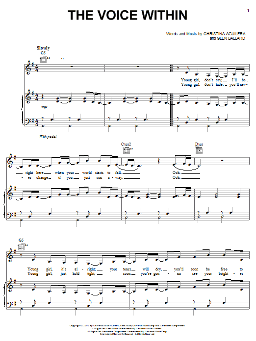 Download or print Christina Aguilera The Voice Within sheet music, chords and digital score arranged for Flute Solo. This Pop score includes 2 page(s).