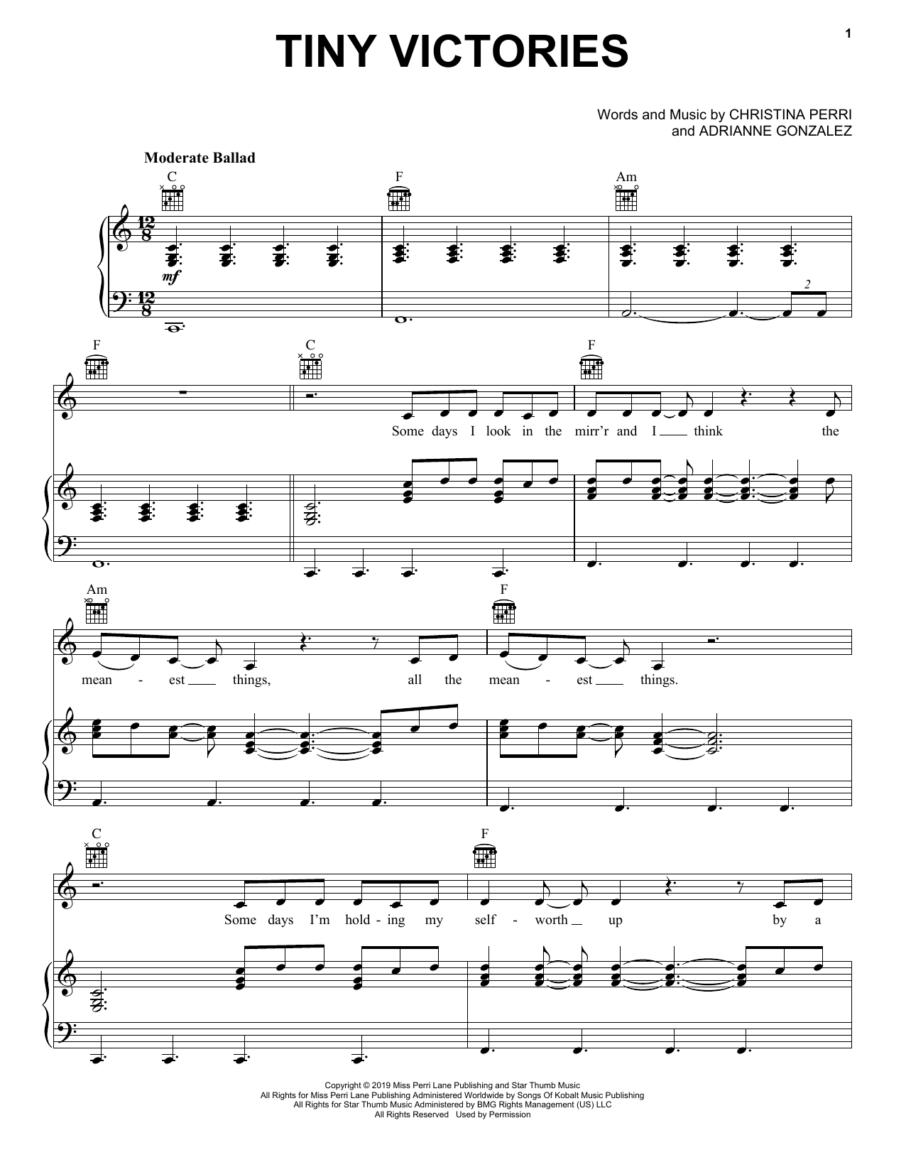 Download or print Christina Perri Tiny Victories sheet music, chords and digital score arranged for Piano, Vocal & Guitar Chords (Right-Hand Melody). This Pop score includes 6 page(s).