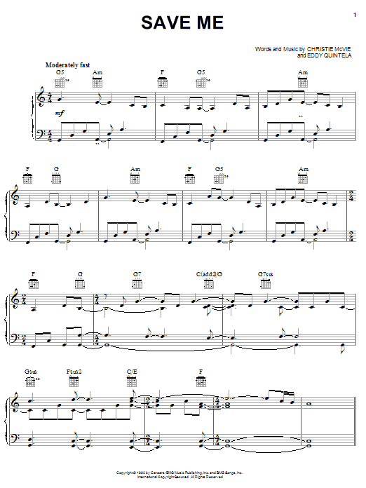 Download or print Christine McVie Save Me sheet music, chords and digital score arranged for Piano, Vocal & Guitar Chords (Right-Hand Melody). This Pop score includes 5 page(s).
