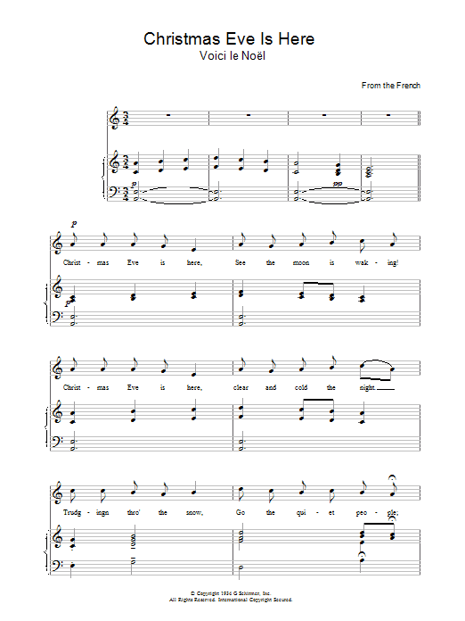 Download or print Christmas Carol Christmas Eve Is Here sheet music, chords and digital score arranged for Piano, Vocal & Guitar Chords. This Christmas score includes 2 page(s).