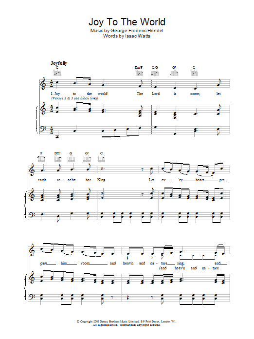 Download or print Isaac Watts Joy To The World sheet music, chords and digital score arranged for Piano Solo. This Christmas score includes 3 page(s).