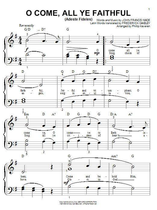Download or print John Francis Wade O Come, All Ye Faithful (Adeste Fideles) (arr. Phillip Keveren) sheet music, chords and digital score arranged for Piano Solo. This Christmas score includes 3 page(s).