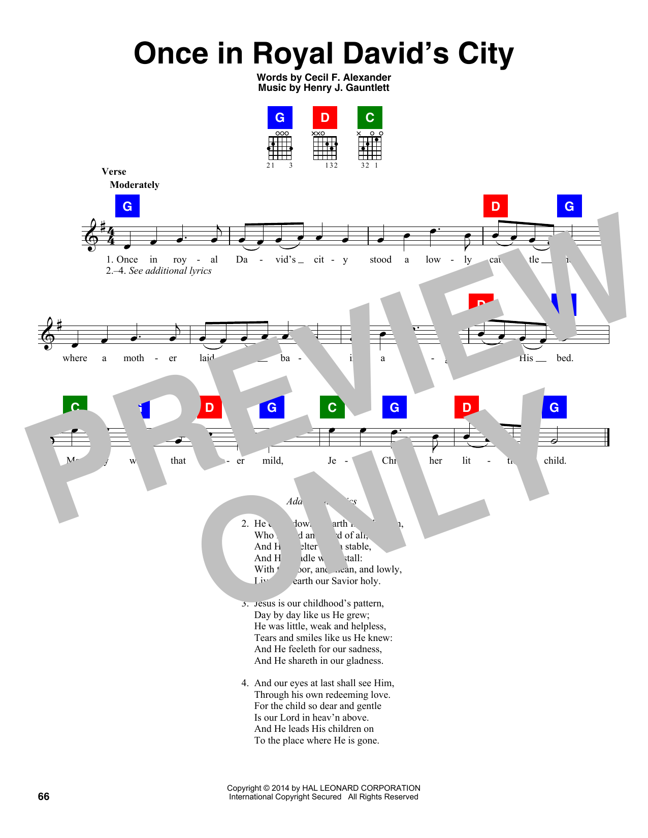 Download or print Henry J. Gauntlett Once In Royal David's City sheet music, chords and digital score arranged for ChordBuddy. This Christmas score includes 1 page(s).