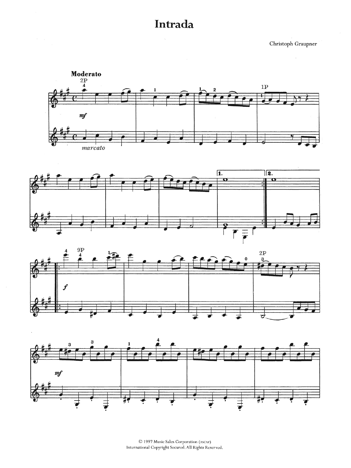 Download or print Christoph Graupner Intrada sheet music, chords and digital score arranged for Easy Guitar. This Classical score includes 2 page(s).