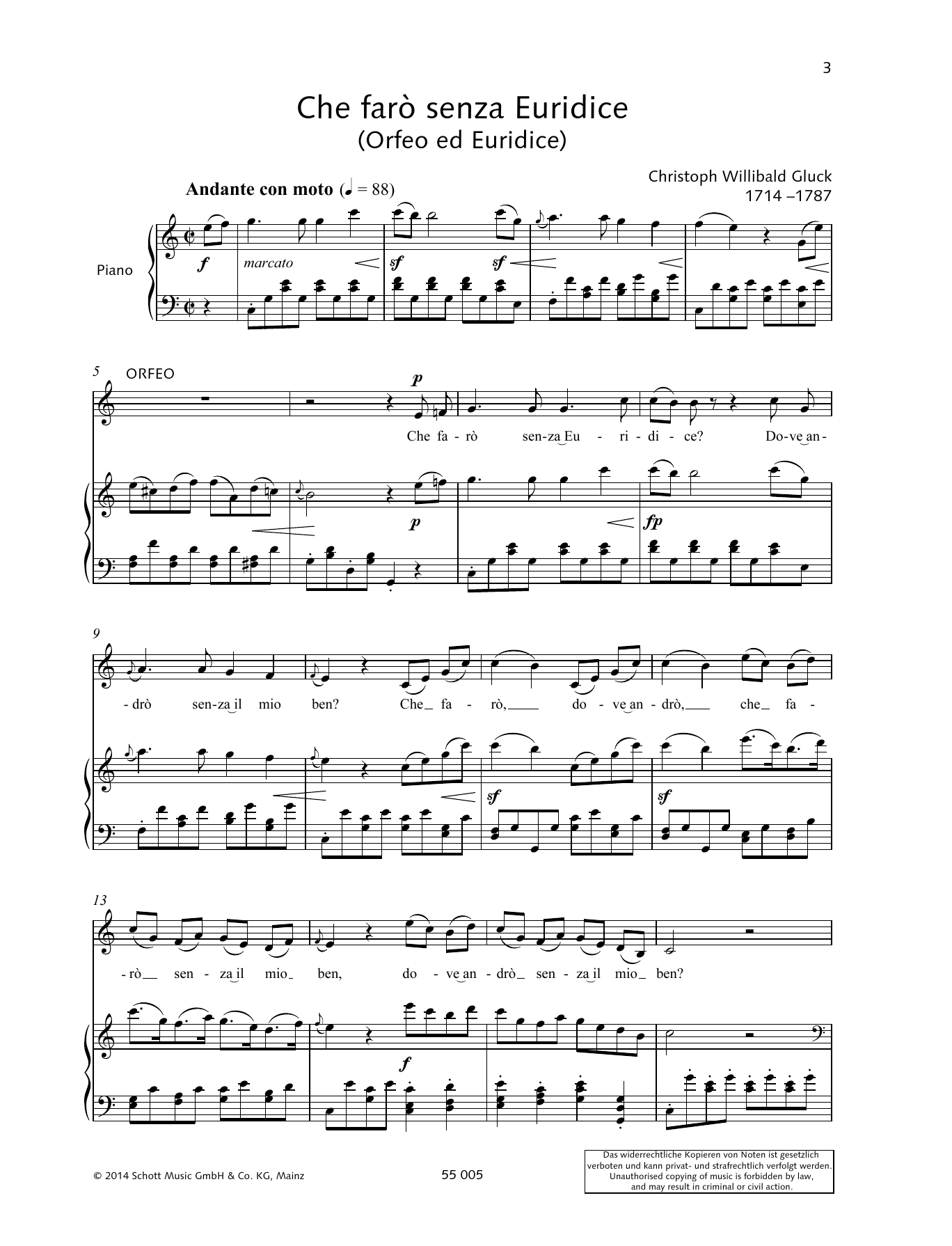 Download or print Christoph Willibald Gluck Che farò senza Euridice sheet music, chords and digital score arranged for Piano & Vocal. This Classical score includes 4 page(s).