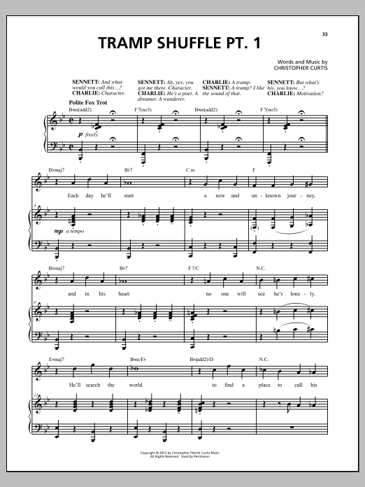 Download or print Christopher Curtis Tramp Shuffle Pt. 1 sheet music, chords and digital score arranged for Piano & Vocal. This Musical/Show score includes 7 page(s).