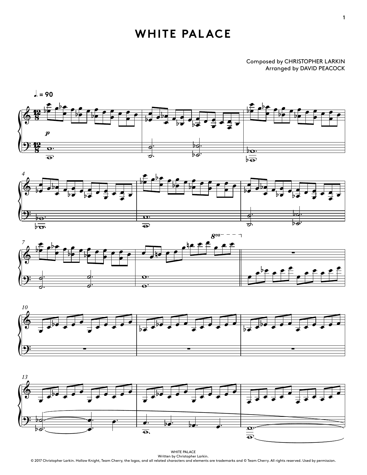 Download or print Christopher Larkin White Palace (from Hollow Knight Piano Collections) (arr. David Peacock) sheet music, chords and digital score arranged for Piano Solo. This Video Game score includes 7 page(s).