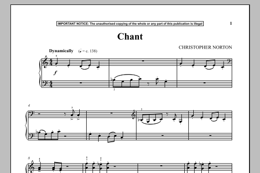 Download or print Christopher Norton Chant sheet music, chords and digital score arranged for Piano Solo. This Classical score includes 1 page(s).