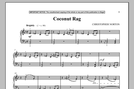 Download or print Christopher Norton Coconut Rag sheet music, chords and digital score arranged for Piano Solo. This Jazz score includes 1 page(s).