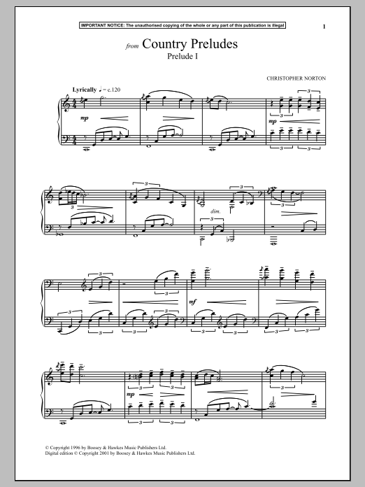 Download or print Christopher Norton Country Preludes, Prelude I sheet music, chords and digital score arranged for Piano Solo. This Country score includes 3 page(s).