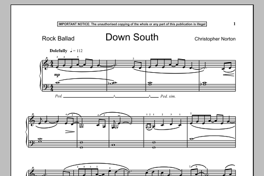 Download or print Christopher Norton Down South sheet music, chords and digital score arranged for Piano Solo. This Classical score includes 1 page(s).