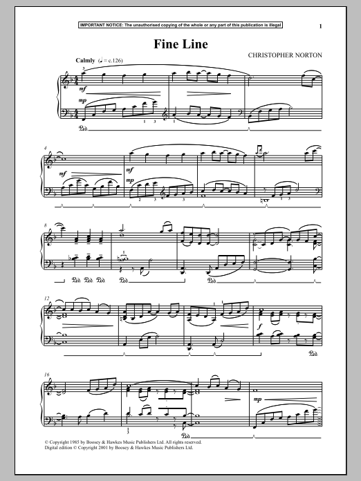 Download or print Christopher Norton Fine Line sheet music, chords and digital score arranged for Piano Solo. This Classical score includes 2 page(s).
