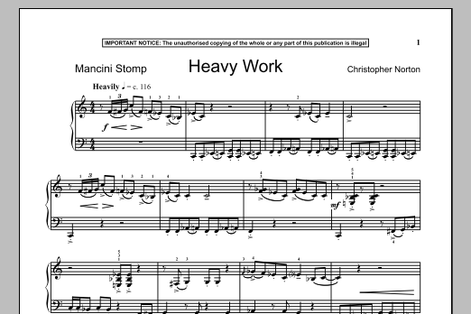 Download or print Christopher Norton Heavy Work sheet music, chords and digital score arranged for Piano Solo. This Classical score includes 1 page(s).