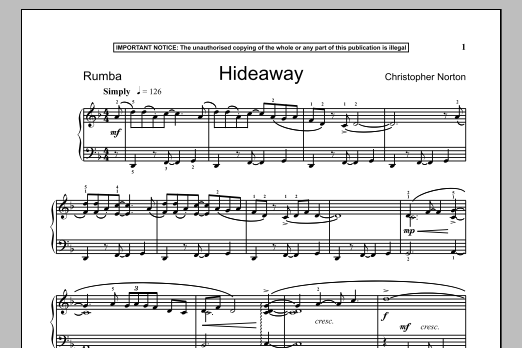 Download or print Christopher Norton Hideaway sheet music, chords and digital score arranged for Piano Solo. This Classical score includes 1 page(s).