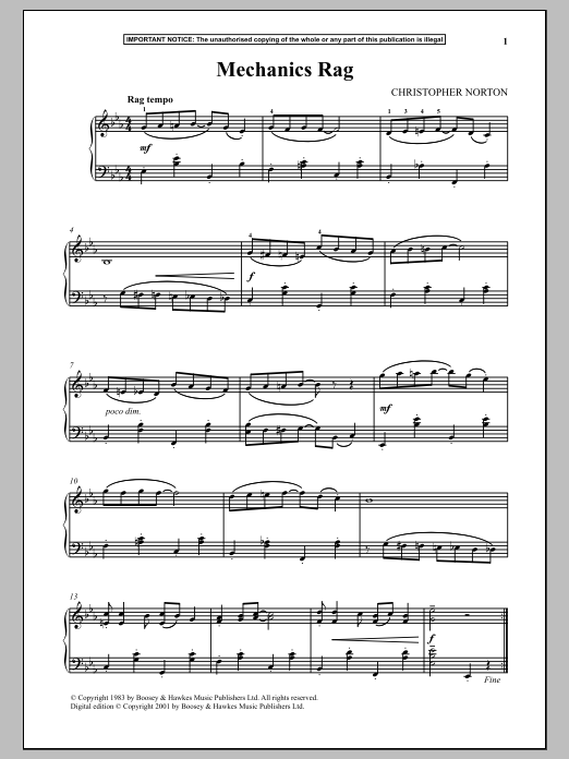 Download or print Christopher Norton Mechanics Rag sheet music, chords and digital score arranged for Piano Solo. This Jazz score includes 2 page(s).