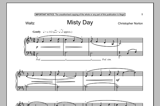 Download or print Christopher Norton Misty Day sheet music, chords and digital score arranged for Piano Solo. This Classical score includes 1 page(s).