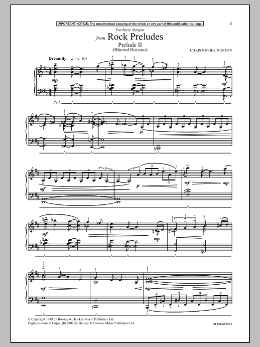 Download or print Christopher Norton Prelude II (Blurred Horizon) (from Rock Preludes) sheet music, chords and digital score arranged for Piano Solo. This Rock score includes 4 page(s).