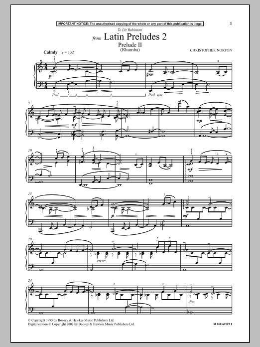 Download or print Christopher Norton Prelude II (Rhumba) (from Latin Preludes 2) sheet music, chords and digital score arranged for Piano Solo. This Latin score includes 2 page(s).
