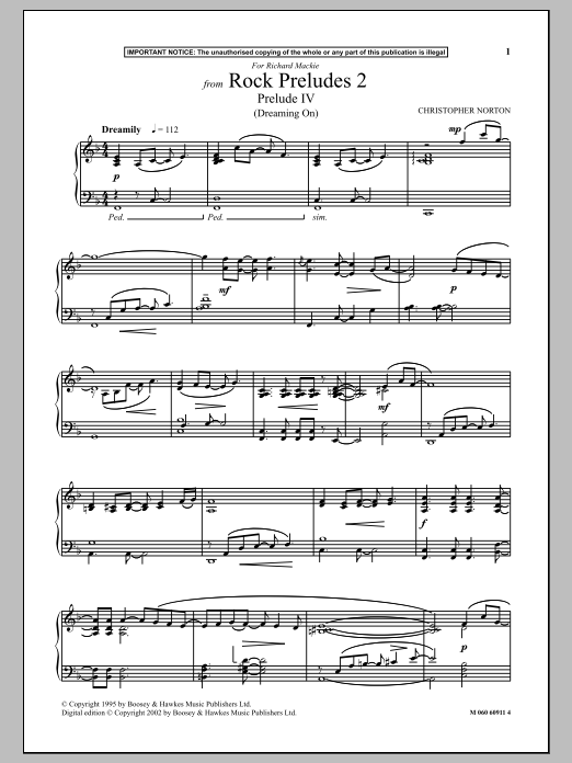 Download or print Christopher Norton Prelude IV (Dreaming On) (from Rock Preludes 2) sheet music, chords and digital score arranged for Piano Solo. This Classical score includes 2 page(s).