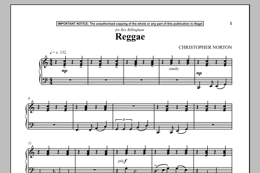 Download or print Christopher Norton Reggae sheet music, chords and digital score arranged for Piano Solo. This Reggae score includes 1 page(s).