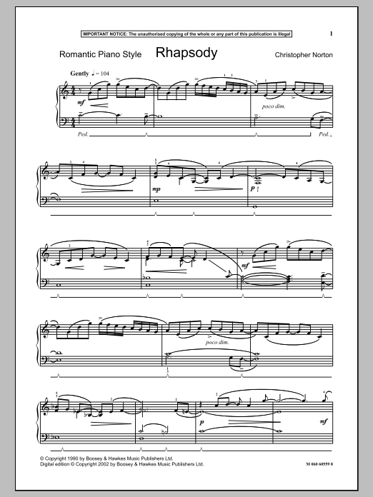 Download or print Christopher Norton Rhapsody sheet music, chords and digital score arranged for Piano Solo. This Classical score includes 2 page(s).