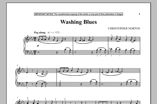 Download or print Christopher Norton Washing Blues sheet music, chords and digital score arranged for Piano Solo. This Blues score includes 1 page(s).