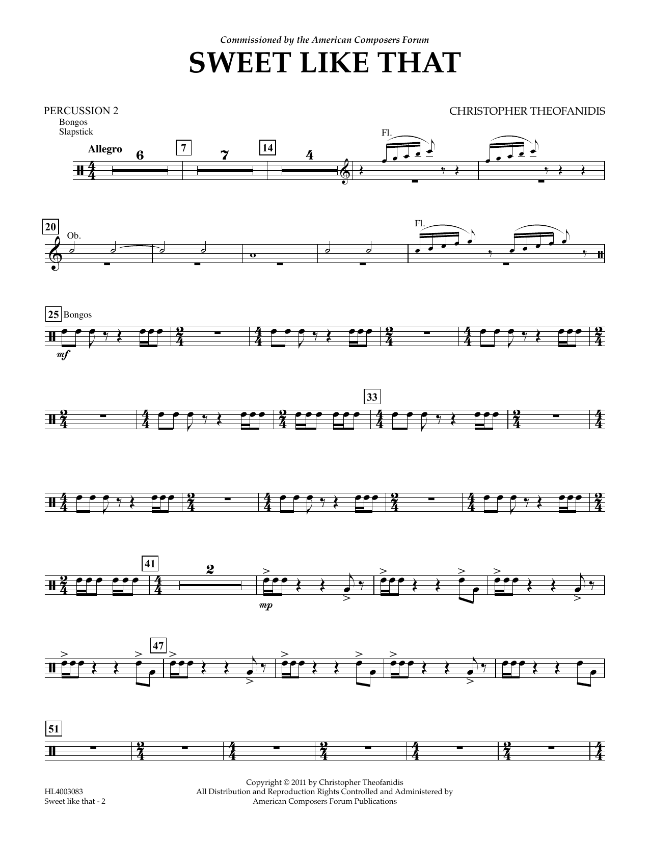 Download or print Christopher Theofanidis Sweet like that - Percussion II sheet music, chords and digital score arranged for Concert Band. This Contest score includes 2 page(s).