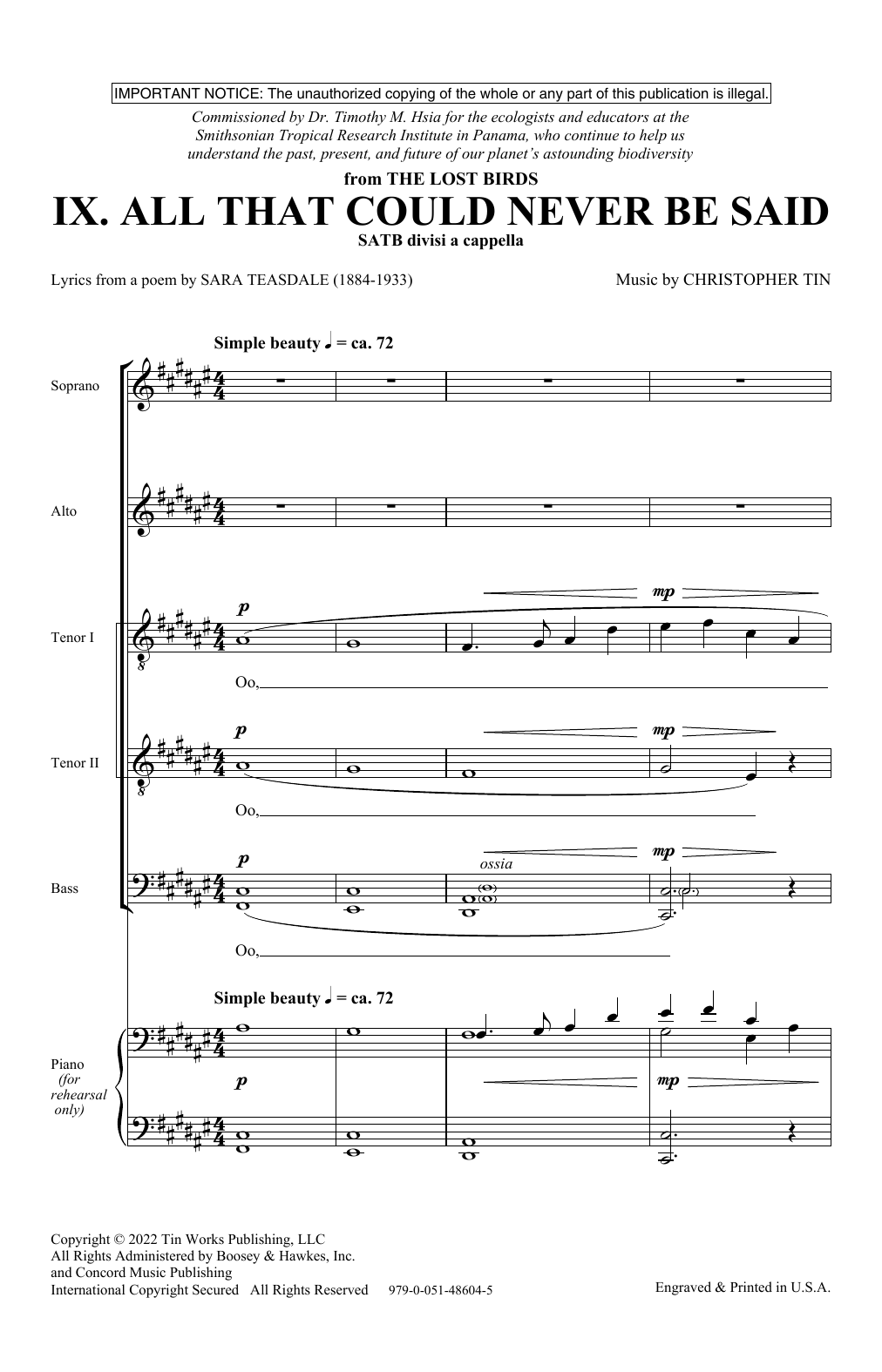Download or print Christopher Tin All That Could Never Be Said (Movement IX from The Lost Birds) sheet music, chords and digital score arranged for Choir. This Concert score includes 10 page(s).