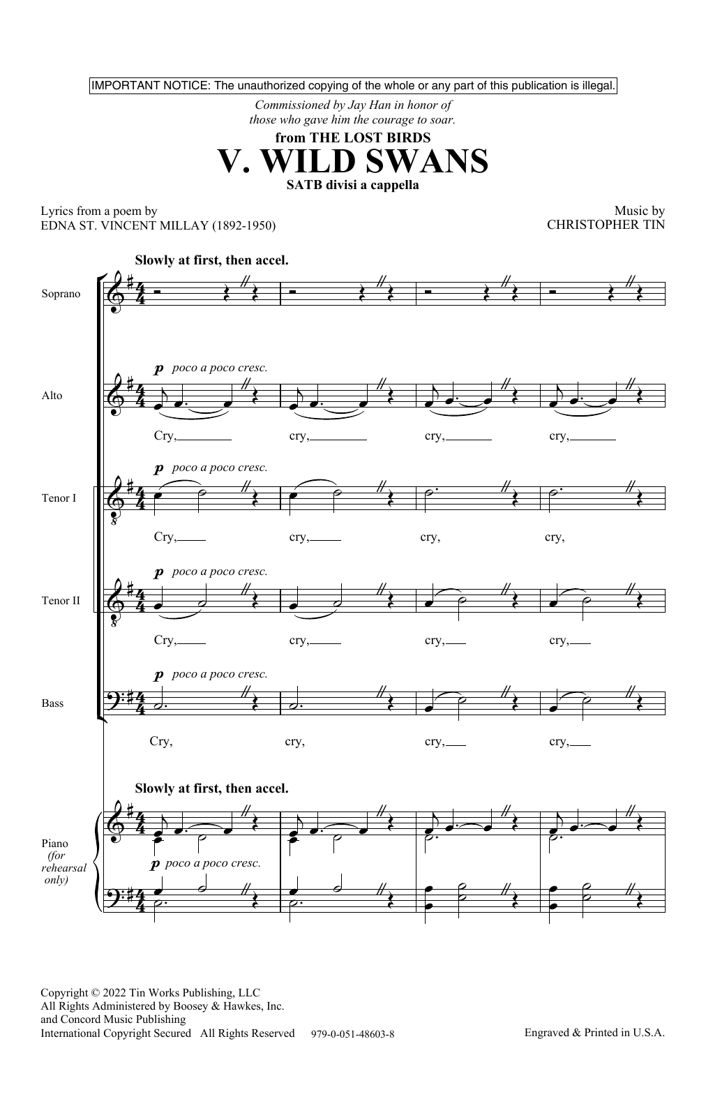 Download or print Christopher Tin Wild Swans (Movement V from The Lost Birds) sheet music, chords and digital score arranged for Choir. This Concert score includes 14 page(s).