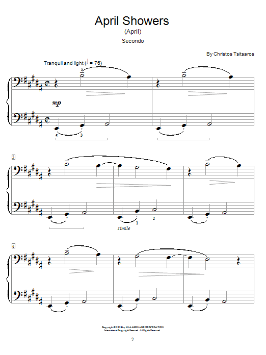 Download or print Christos Tsitsaros April Showers (April) sheet music, chords and digital score arranged for Piano Duet. This Children score includes 4 page(s).