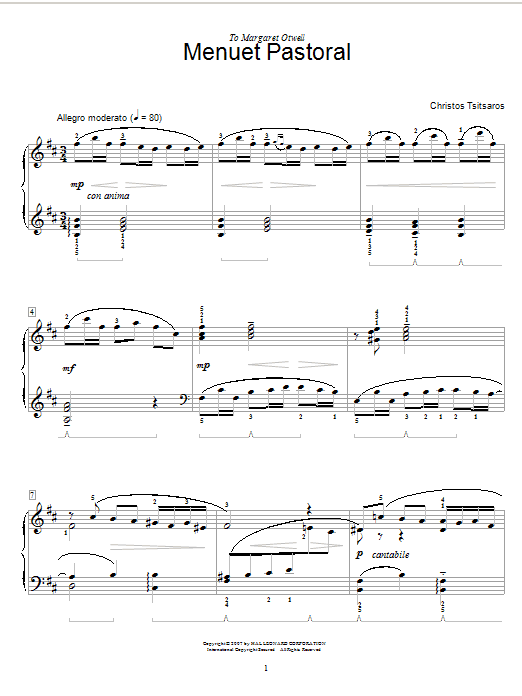 Download or print Christos Tsitsaros Menuet Pastoral sheet music, chords and digital score arranged for Educational Piano. This World score includes 3 page(s).