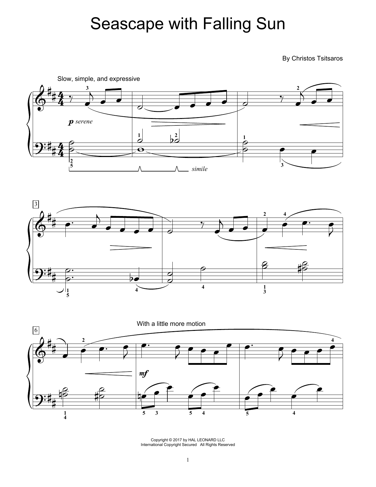 Download or print Christos Tsitsaros Seascape With Falling Sun sheet music, chords and digital score arranged for Educational Piano. This Instructional score includes 2 page(s).