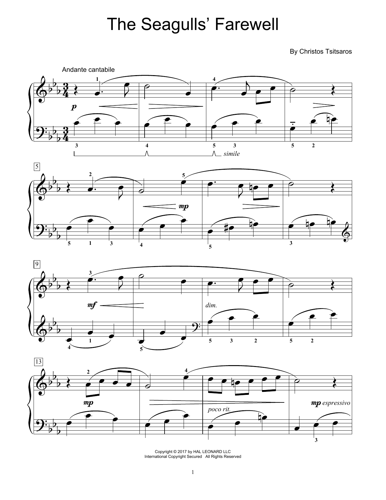 Download or print Christos Tsitsaros The Seagulls' Farewell sheet music, chords and digital score arranged for Educational Piano. This Instructional score includes 3 page(s).