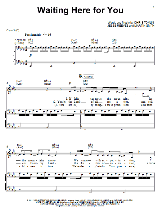 Download or print Christy Nockels Waiting Here For You sheet music, chords and digital score arranged for Piano, Vocal & Guitar Chords (Right-Hand Melody). This Christian score includes 8 page(s).