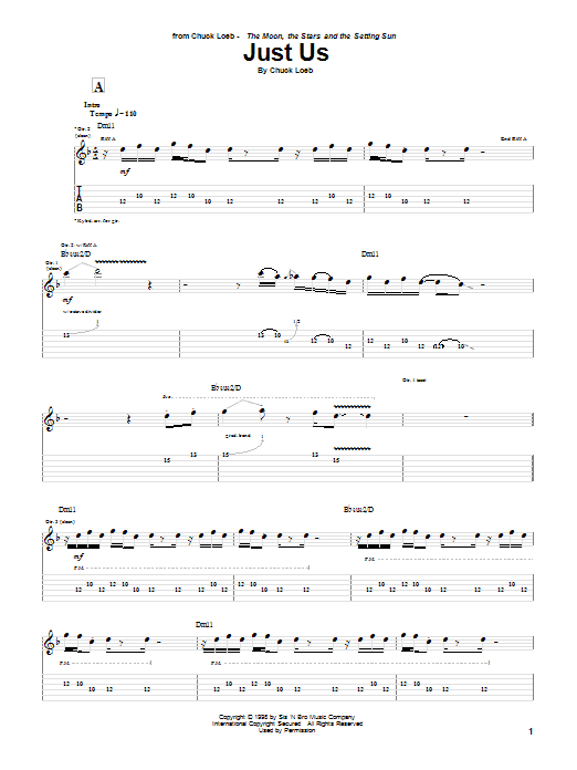 Download or print Chuck Loeb Just Us sheet music, chords and digital score arranged for Guitar Tab. This Jazz score includes 10 page(s).