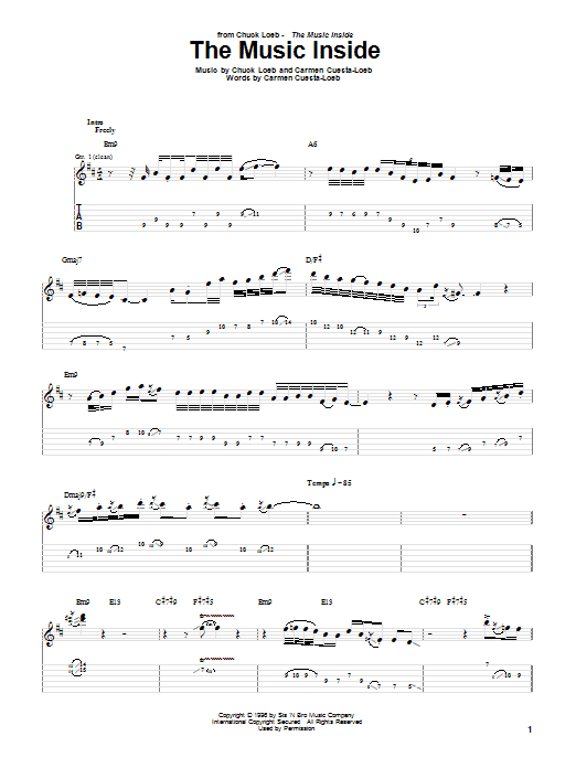 Download or print Chuck Loeb The Music Inside sheet music, chords and digital score arranged for Guitar Tab. This Jazz score includes 7 page(s).