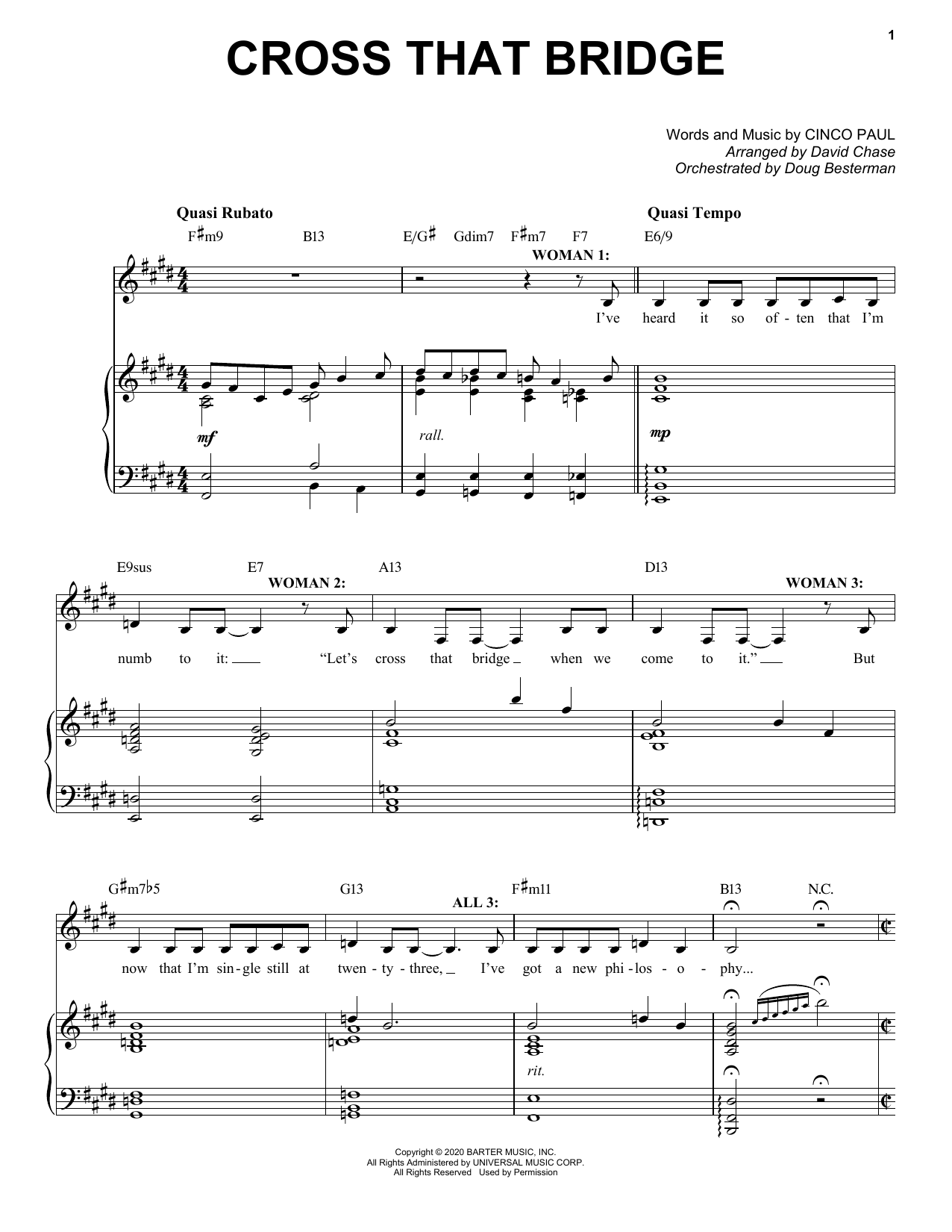 Download or print Cinco Paul Cross That Bridge (from Schmigadoon!) sheet music, chords and digital score arranged for Piano & Vocal. This Film/TV score includes 9 page(s).