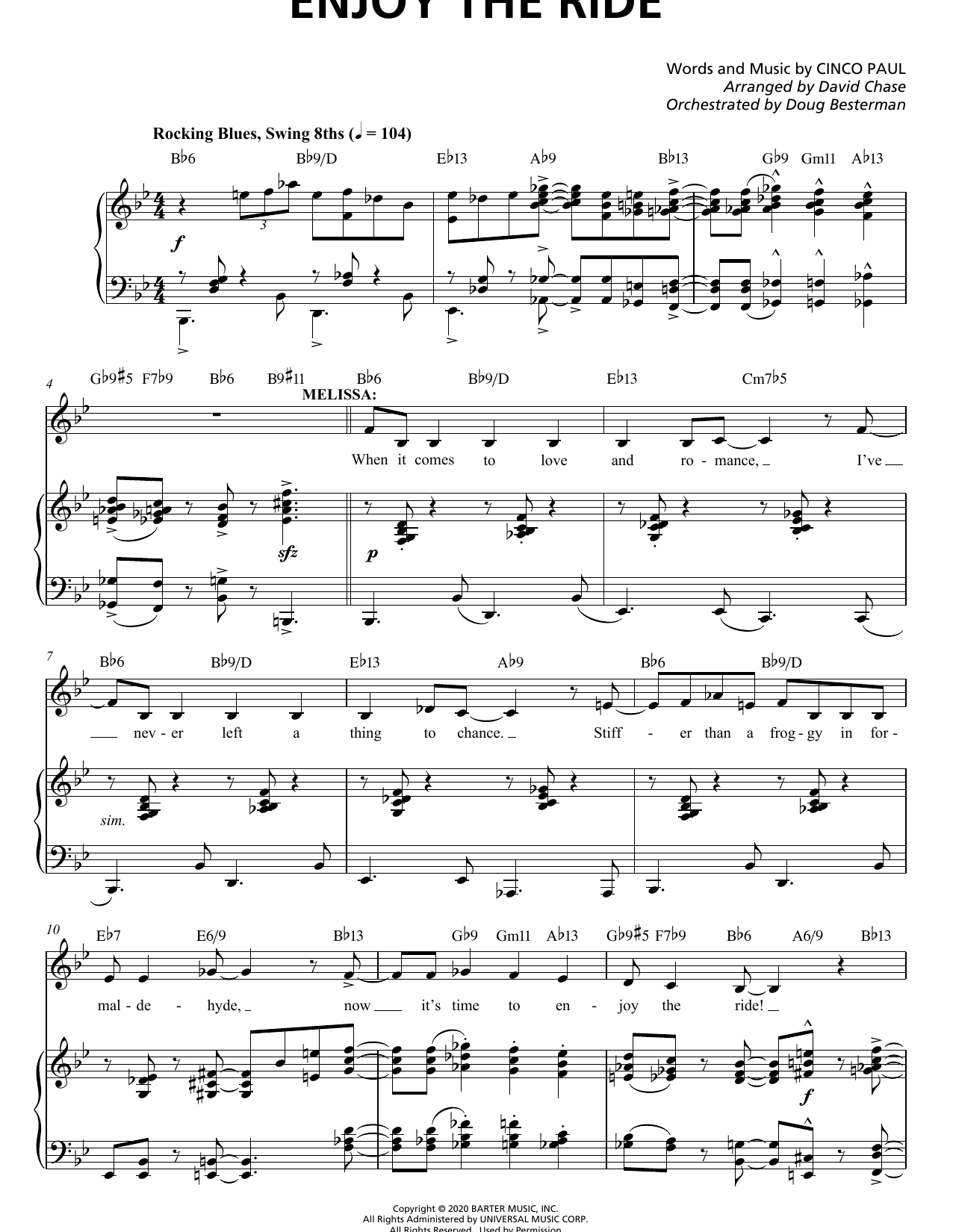 Download or print Cinco Paul Enjoy The Ride (from Schmigadoon!) sheet music, chords and digital score arranged for Piano & Vocal. This Film/TV score includes 7 page(s).