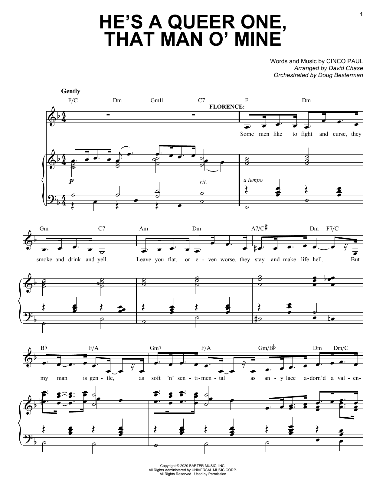 Download or print Cinco Paul He's A Queer One, That Man O' Mine (from Schmigadoon!) sheet music, chords and digital score arranged for Piano & Vocal. This Film/TV score includes 4 page(s).